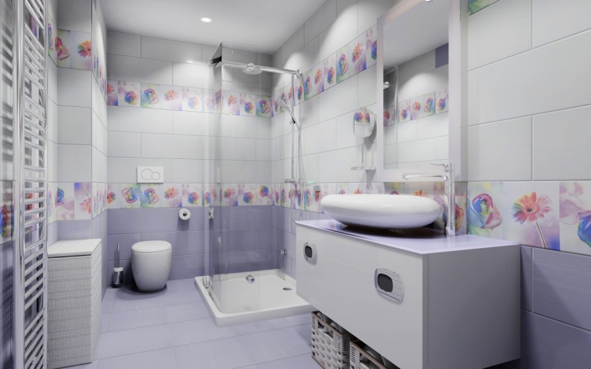 Оптимальным решением при благоустройстве сантехнического помещения будет использование песочных, голубоватых, бледно-сиреневых, нежно-голубых и салатовых оттенков.