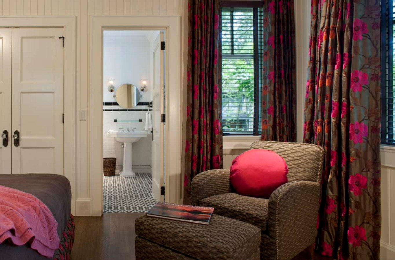 Однако с розовым его применяют не только в детских комнатах. Оформление спален этими цветами придаст романтики её обитателям. Применение различных оттенков этих цветов, а также разнообразных декоративных элементов, подчёркивающих те или иные предметы, всегда широко использовалось в дизайне помещений.