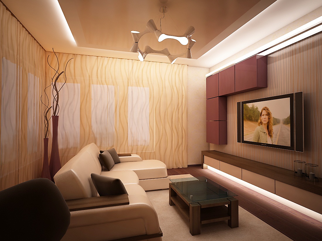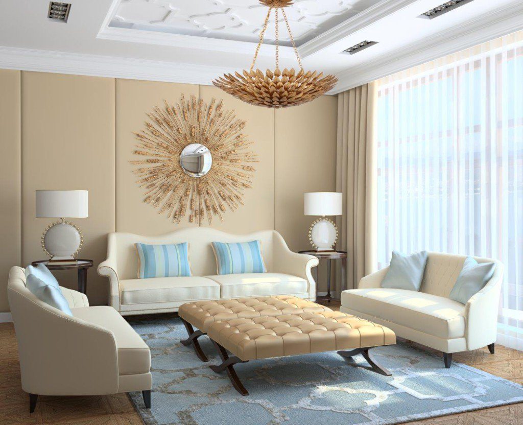 Принимая решение о цветовом дизайне квартиры и, в частности, гостиной, нужно знать оптические свойства выбранных оттенков. Так, бежевый зрительно увеличивает пространство и делает комнату светлее. Даже маленькая гостиная будет казаться больше, если она оформлена преимущественно в светлых тонах бежа.