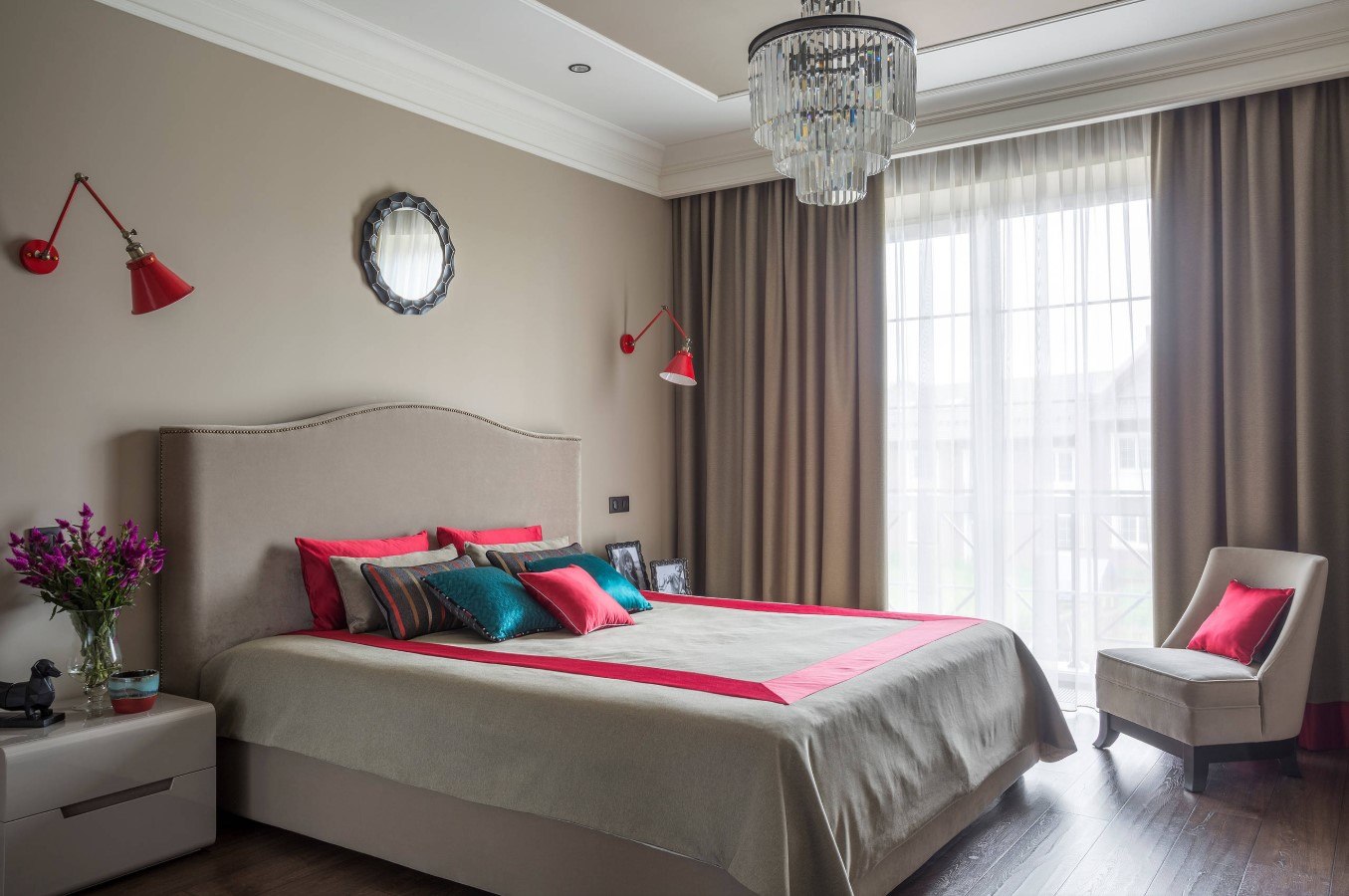 Зачастую бежево-коричневые тона используются в сочетании с третьим акцентным цветом (к примеру, красным или бирюзовым) – это оживляет сдержанный интерьер гостиной. Но учтите: чем интенсивнее и глубже выбранный оттенок коричневого, тем меньше должно быть ярких акцентов в посторонних цветах. Шоколадный цвет эстетичен сам по себе и не нуждается в дополнительном пестром декоре.
