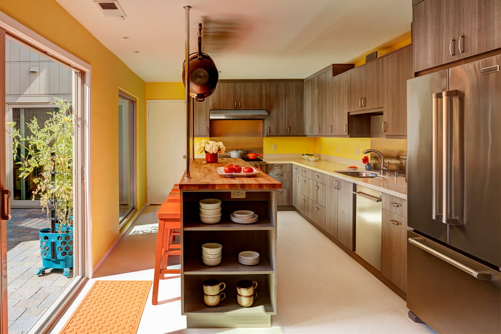 Взаимосвязь этих двух цветов в интерьере небольшой комнаты, где слабое освещение, заполонит её солнечным светом и визуально расширит помещение.