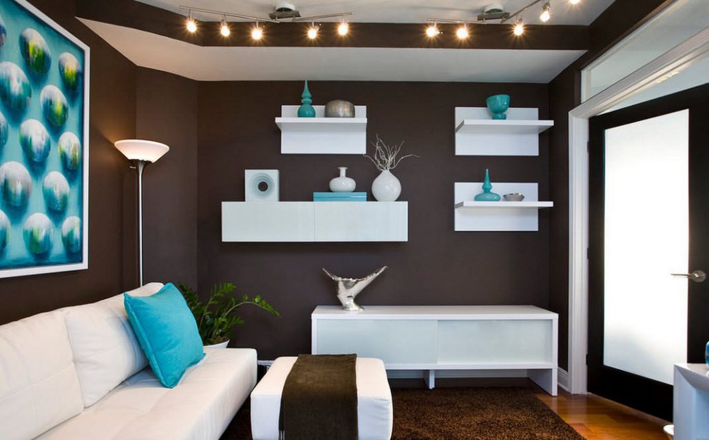 Коричневый вносит в обстановку ощущение тепла и уюта. Но темные оттенки коричневого коварны: в большом количестве они уменьшают пространство, как бы сжимая его. Поэтому темные коричневые тона рекомендуются только для просторных гостиных площадью от 20 кв.м. Для более скромных комнат допускаются небольшие декоративные детали шоколадного цвета.