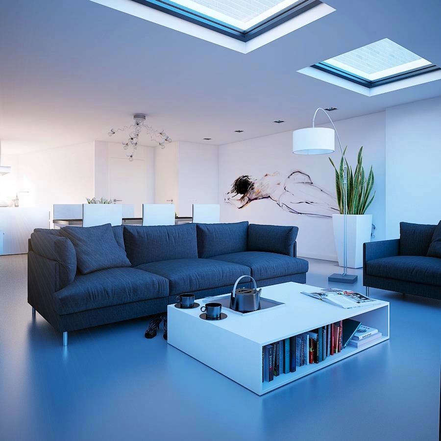 Не рекомендуется сочетание большого количества мебели. Пространство комнаты должно быть достаточно свободным. Сам оттенок обивки дивана освежает обстановку, но избыток другой мебели может визуально превалировать – на этом фоне синий цвет «потеряется».