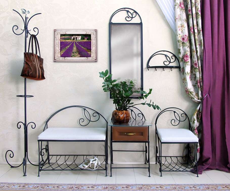 Не менее удобно применять кованную мебель в прихожей (фото ниже).