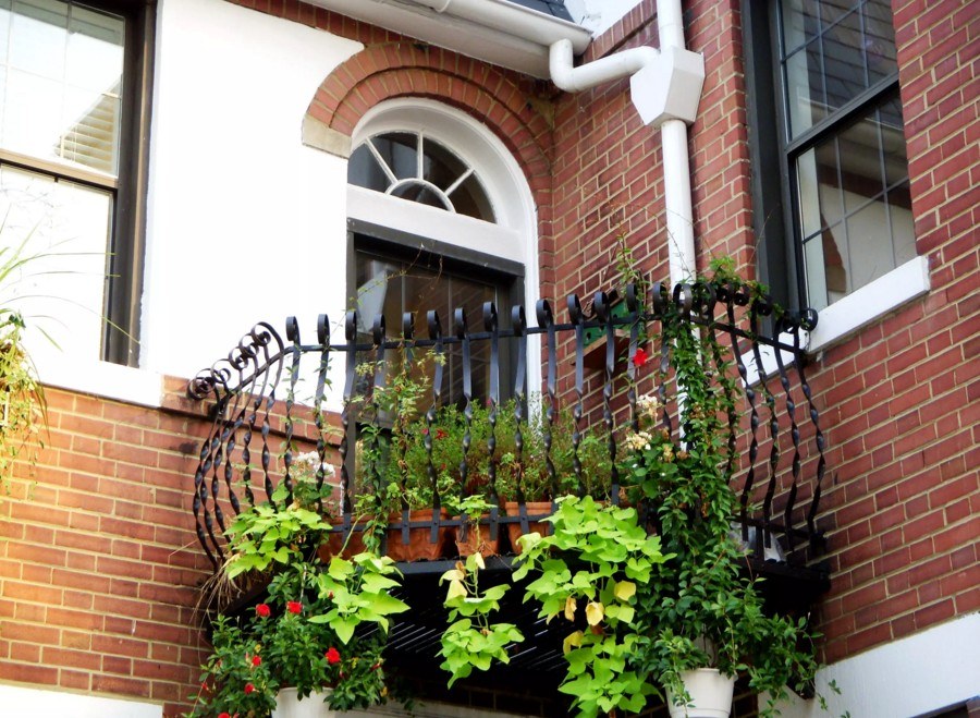 С подставками для цветов. Существует несколько видов подставок: напольные, настенные или те, которые крепятся непосредственно на балконное ограждение.