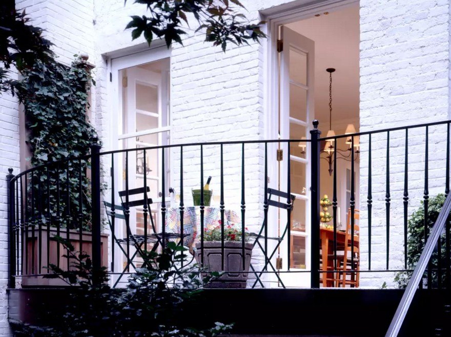 Узкие окна, оформленные французскими балконами из металла смотрятся аккуратно и привлекательно.