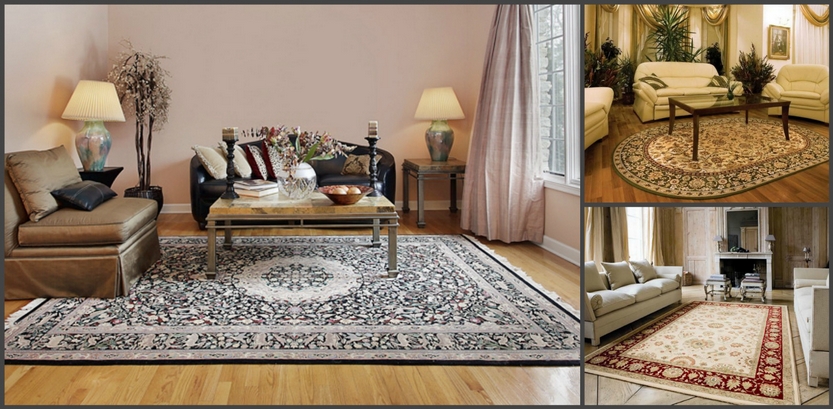 Что касается размеров, то для гостиной выпускается три типа ковров: