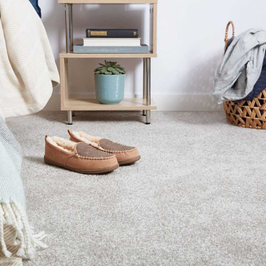 Для маленькой гостиной лучше выбрать светлый однотонный ковер