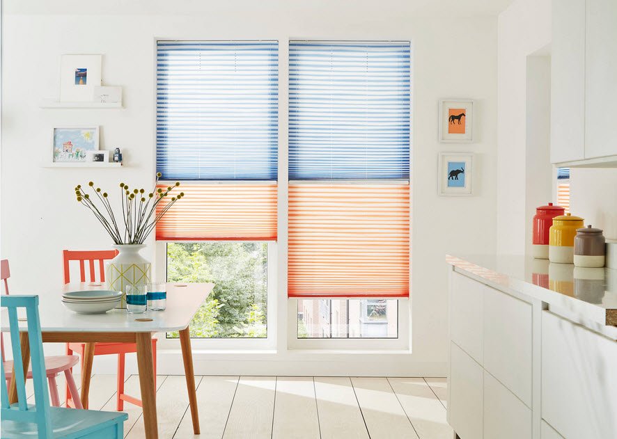 В этом стиле требуется хорошее освещение помещения. Окна должны хорошо пропускать свет, поэтому от тяжелых штор и гардин стоит отказаться. Идеальным решением являются светлые жалюзи.