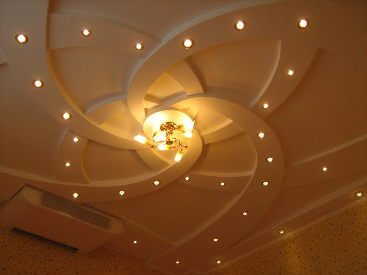 Добиваясь нужного эффекта, в потолок из гипсокартона встраиваются растровые и галогенные светильники (см. расположение точечных светильников на потолке). В дополнение к встроенной системе освещения можно использовать крупные осветительные приборы и декоративные потолочные элементы.