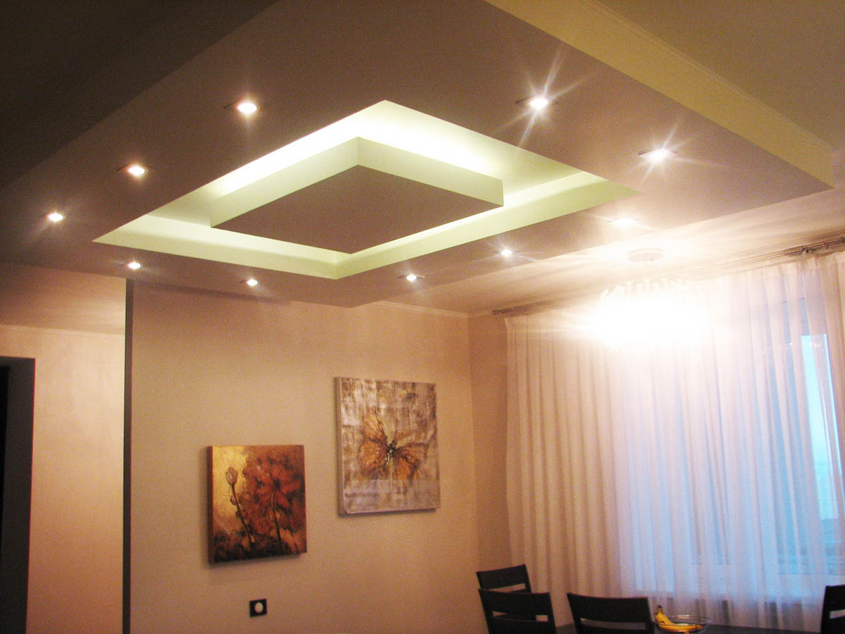 Двухуровневые потолки из гипсокартона – разнообразие встроенных светильников и конфигураций