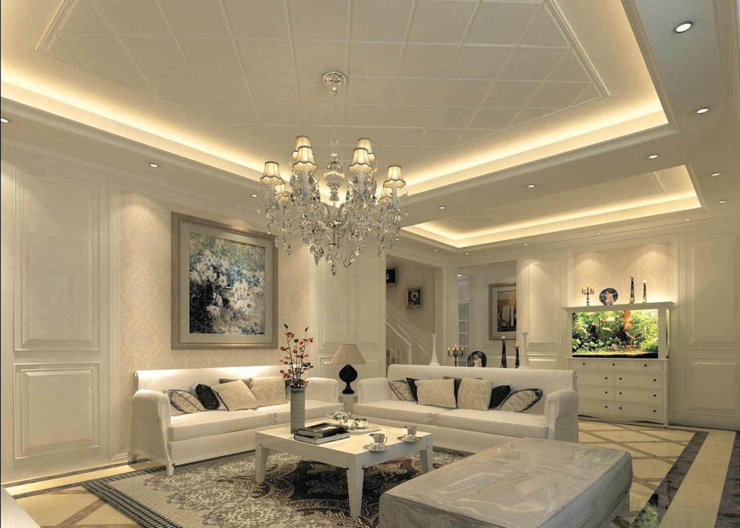На фото – освещение потолка из гипсокартона с подсветкой в гостиной.