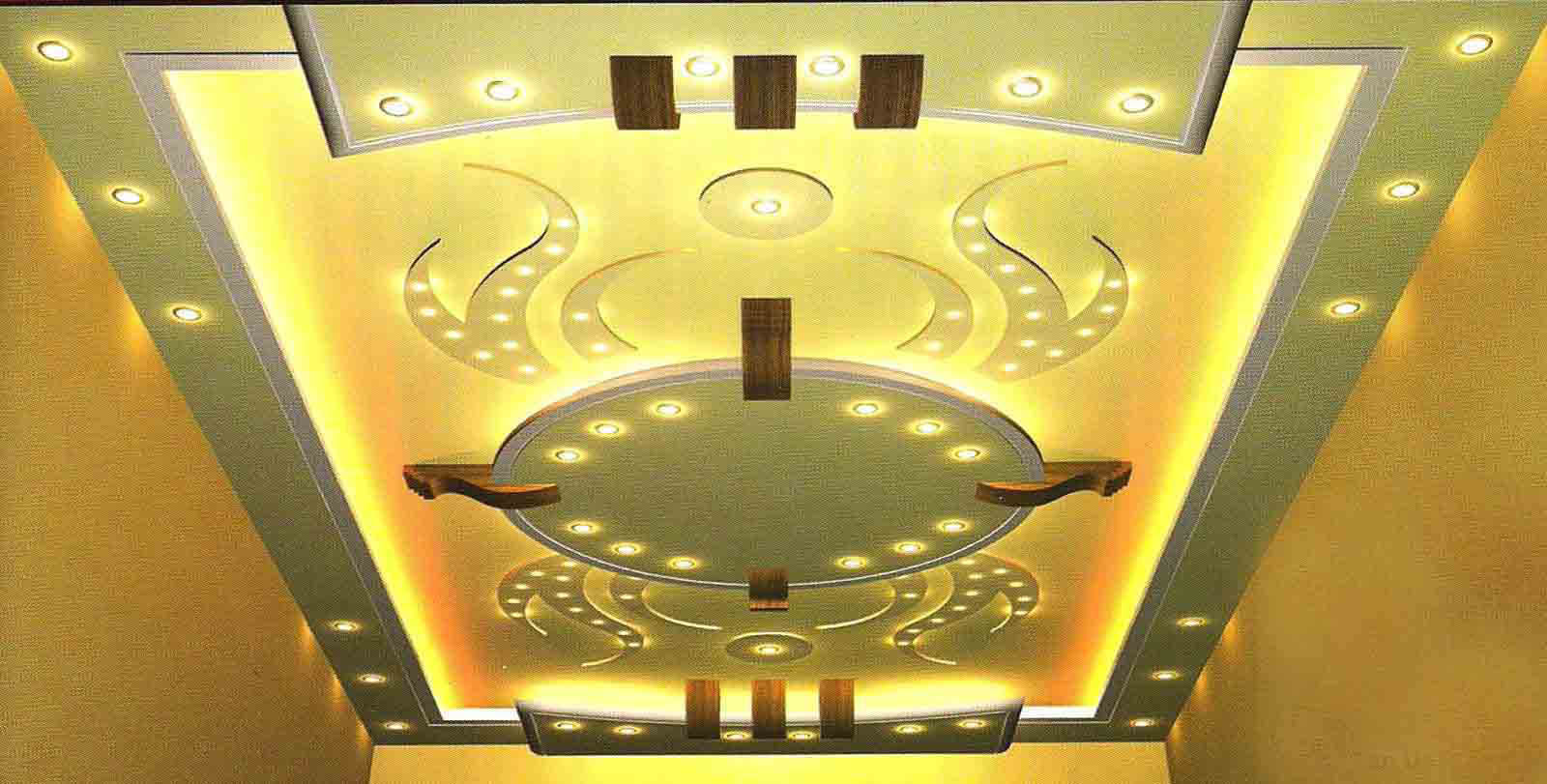 Также в трендах последних лет, которые широко используются для монтажа гипсокартонных потолков в зале в частном доме, узоры – они выгодно смотрятся и в дневном свет, но более всего раскрывают свой потенциал при привлечении подсветки и зонированного освещения.