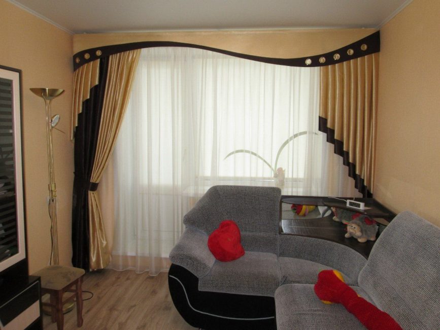 - драпировка обязательна. Особенно красивы ламбрекены, подхваты, кисточки и «маркизы» в складках;