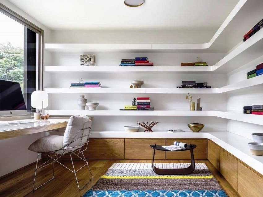 Если рабочую площадь нужно разместить в одной из комнат, отличным вариантом дизайна кабинета станет угол. Используя эту часть комнаты, можно обустроить кабинет, не занимая лишнего домашнего пространства. Одним из вариантов также является разделение одной большой комнаты на несколько. Сделать это можно при помощи гипсокартонной перегородки, которая устанавливается быстро и легко.