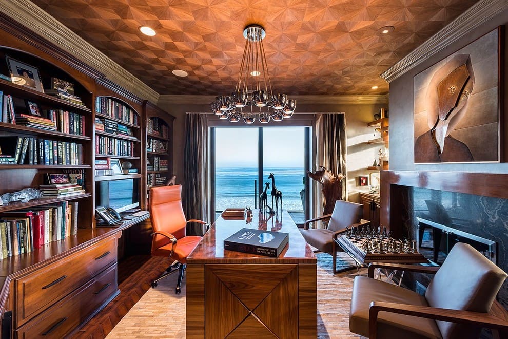 Чтобы придать помещению большего комфорта и уюта, рабочее домашнее пространство в загородной резиденции можно дополнить предметами искусства, фотографиями и прочими аксессуарами. Вещи могут быть простыми и недорогими, но доставлять удовольствие и поднимать настроение.