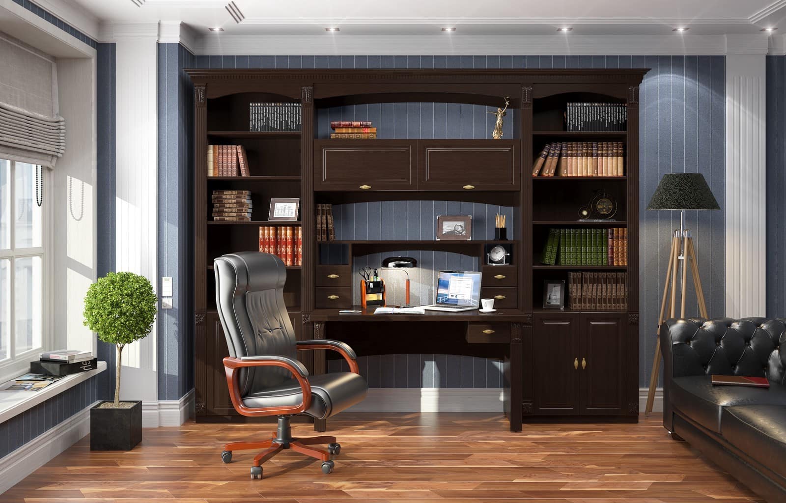 Дизайн кабинета в классическом интерьере отличает практичность и функционализм