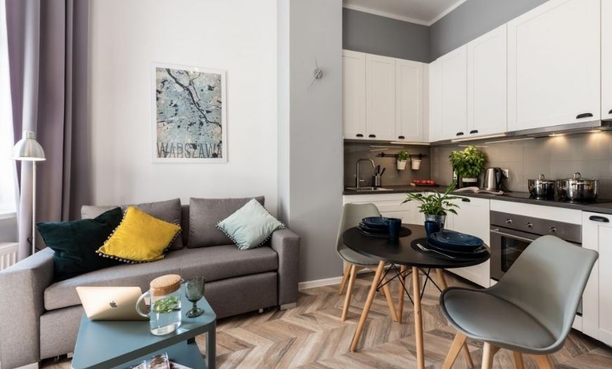 В этом стиле основной акцент делается на функциональности и минимуме деталей. Мебель небольшая, часто раскладная или выдвижная. Декор минимальный. Цветовая гамма нейтральная и неброская, яркие оттенки используются только для создания акцентов. Подобно хай-теку, минимализм наиболее уместен для оформления небольшой по габаритам жилплощади, т. к. позволяет максимально практично и комфортно использовать ограниченное пространство.