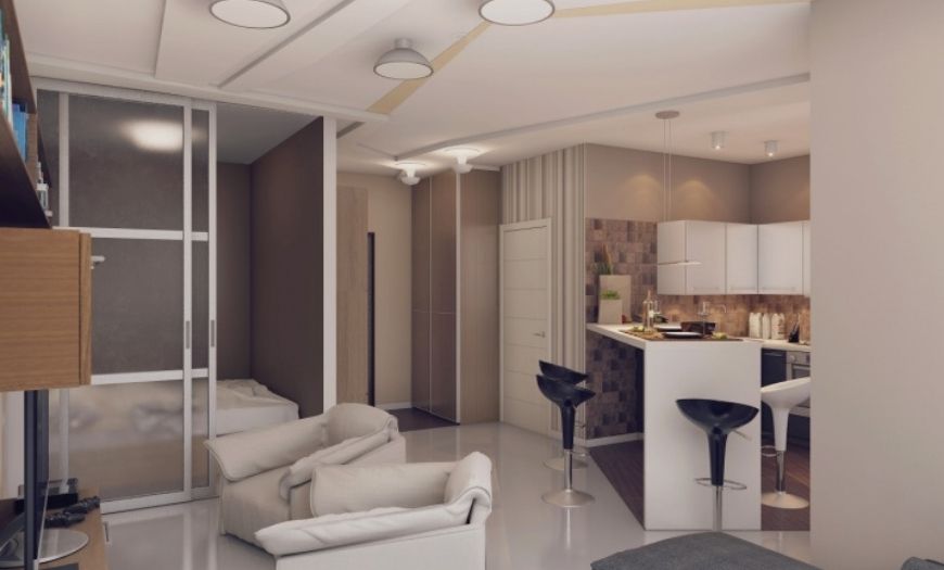 Чтобы разместить в таком пространстве необходимые предметы интерьера, нужно использовать каждый квадратный сантиметр площади. Поэтому для таких помещений лучше всего делать дизайн в стилях, предполагающих четкие линии, простые геометрические формы и отсутствие пышного декора, а именно: