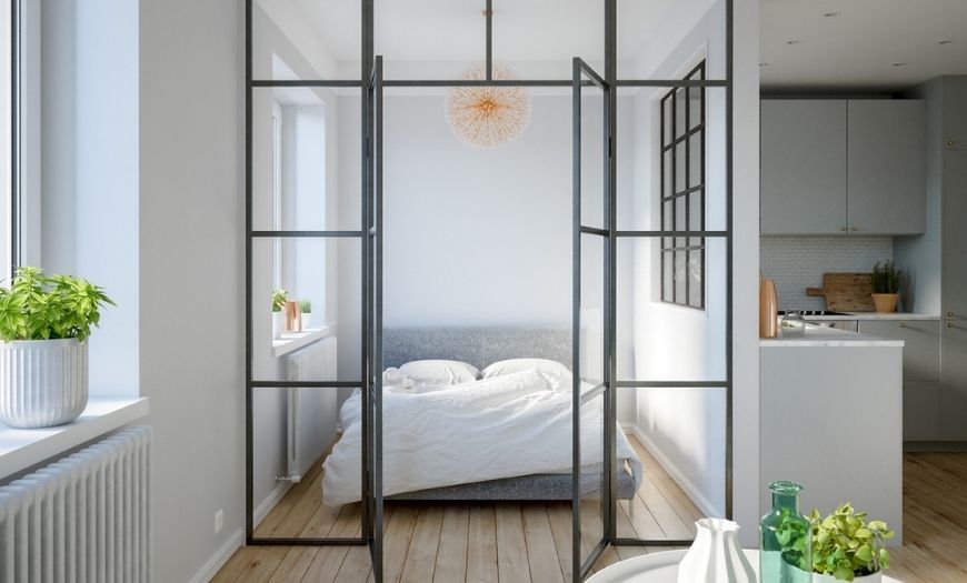 Перегородка позволит четко разделить границы помещения, при этом сохраняя ее целостность