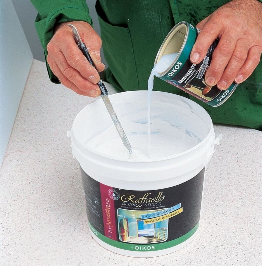 Вода не должна превышать 10% объема краски, поэтому вливайте воду осторожно, тщательно перемешивая содержимое;