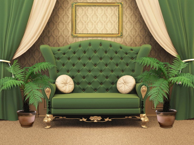 Необарокко – подражание роскоши времен Позднего Средневековья. В это время были в моде гобелены тучной работы с вплетением нитей золота. Синий, темно-зеленый и бордовый бархат штор дополняли золотой бахромой и вычурной фурнитурой.
