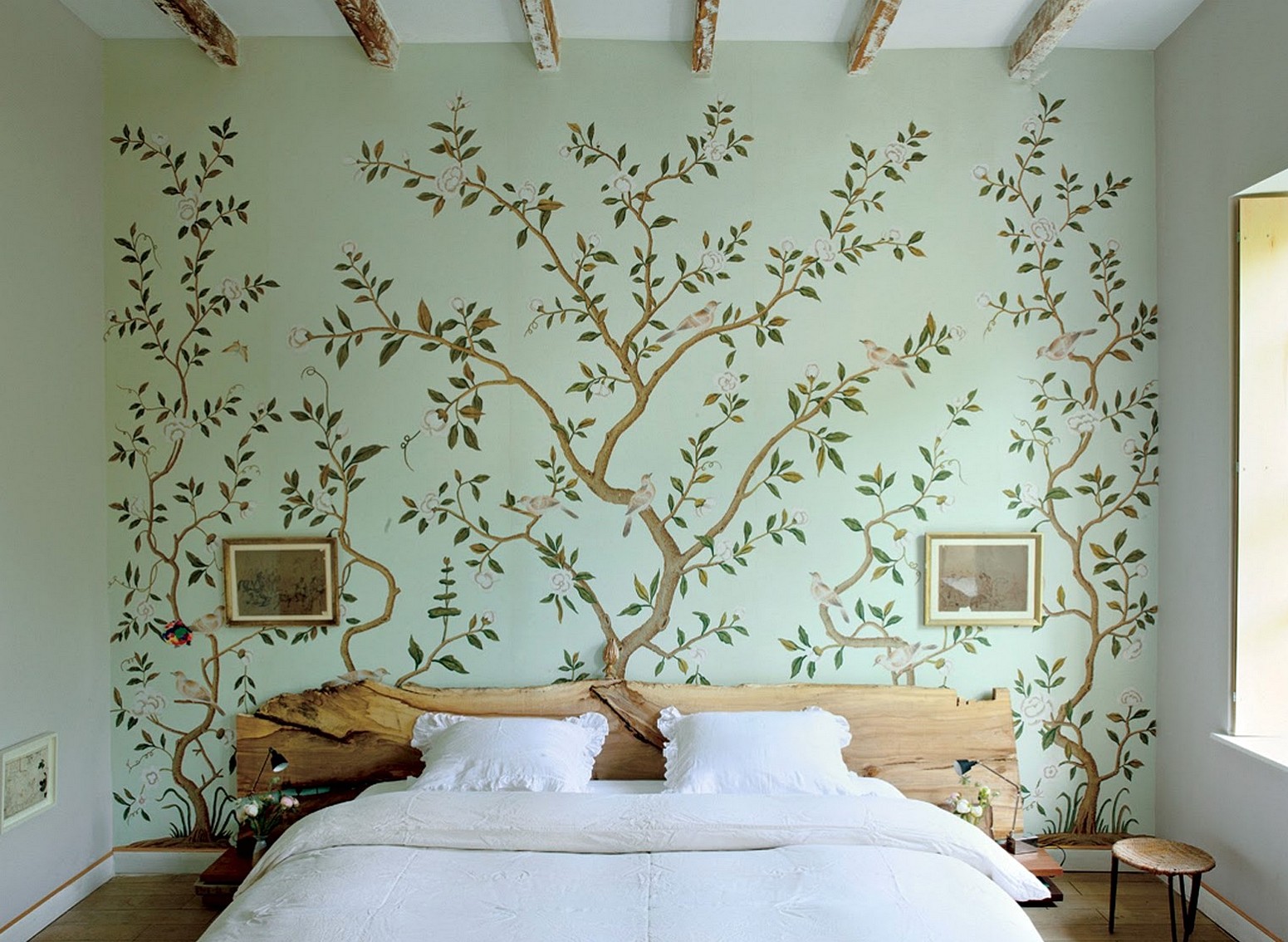 - Необычное изголовье. Резное, мягкое, кованое или изголовьево всю стену. Необычно и полное отсутствие этой детали. Остается только подобрать нужный вариант ведином стиле спальни.