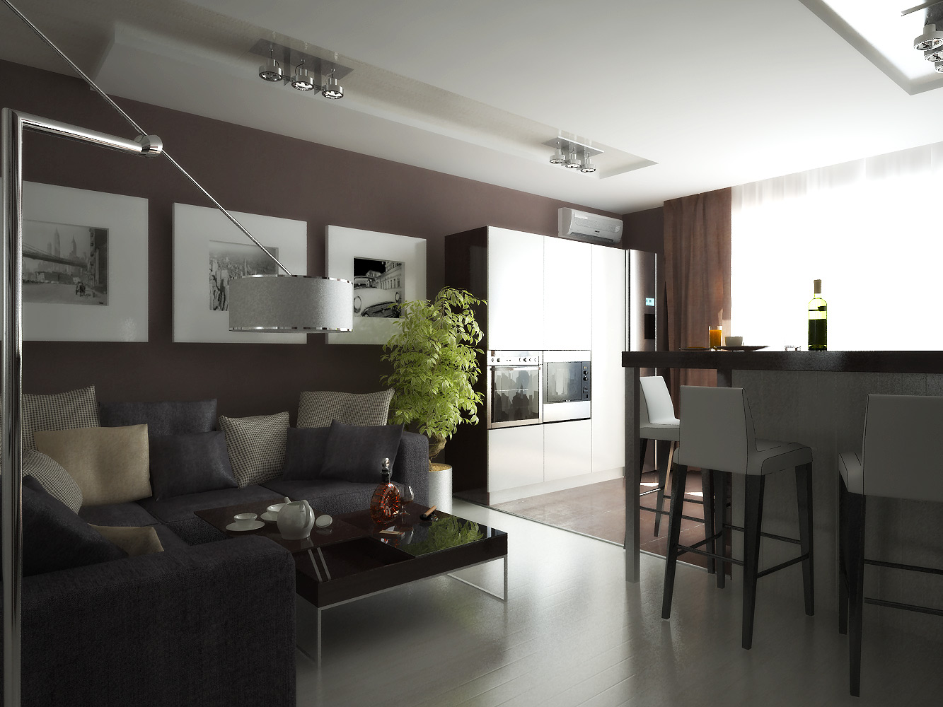 Подобная планировка предоставляет правильное и эргономичное объединение двух функциональных зон в одном помещении и позволяет сделать пространство более свободным. Данное планировочное решение может быть изначально заложено в архитектурном плане квартиры или создано самостоятельно после согласования со специализированными организациями.