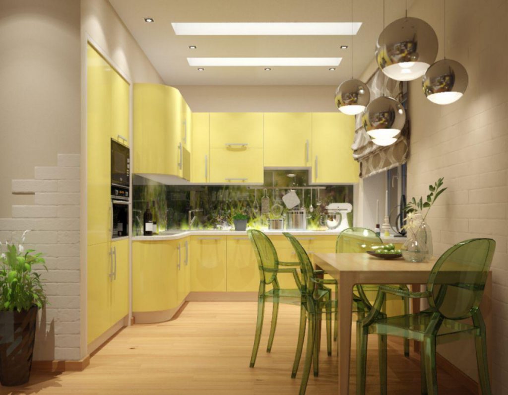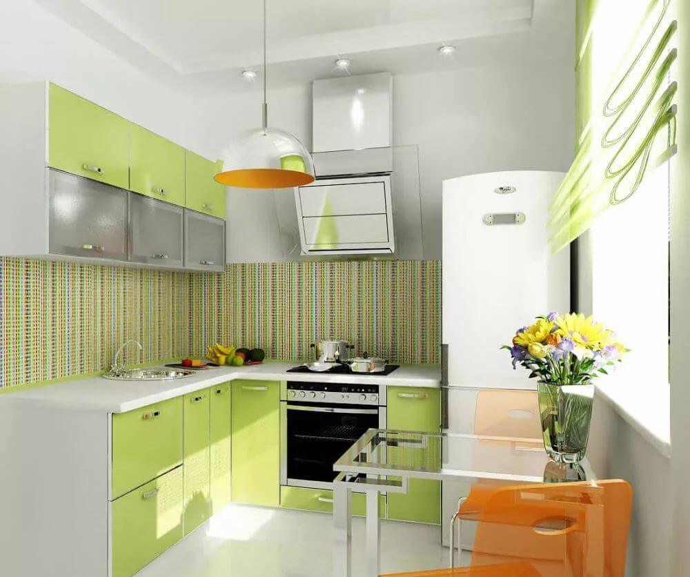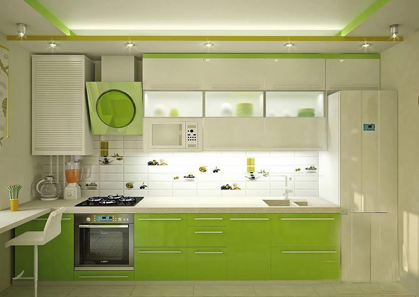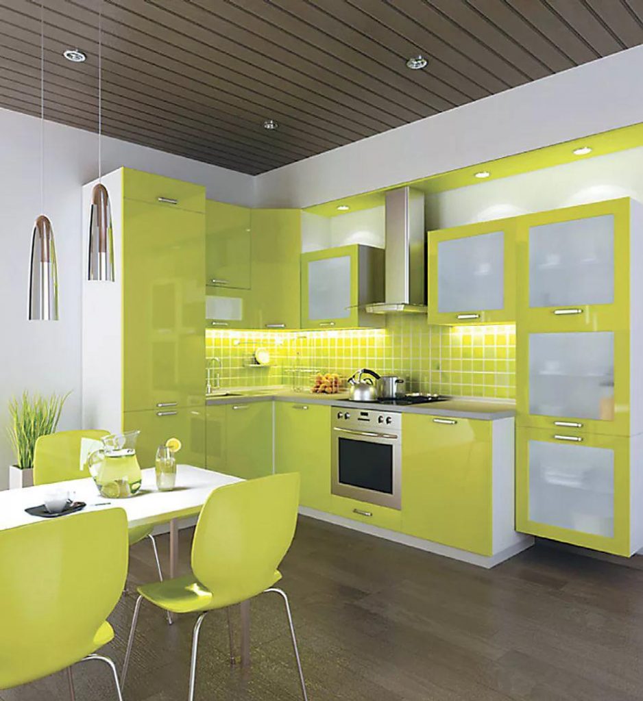 Это очень яркая кухня, если цвет насыщенный. Лучше, конечно, выбирать или оливковые, или фисташковые цвета мебели.