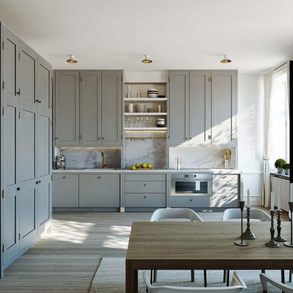 Этот нейтральный тон в сочетании с желтыми, голубыми и коричневыми красками позволяет сделать кухню более теплой или холодной в зависимости от предпочтений хозяев.