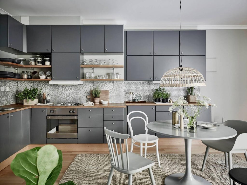 Кухни темно-серого цвета хорошо смотрятся в стилях хай-тек и лофт. Чтобы интерьер не выглядел скучно, можно создать гармоничные сочетания с яркими предметами декора. Серый хорошо сочетается практически со всеми цветами.