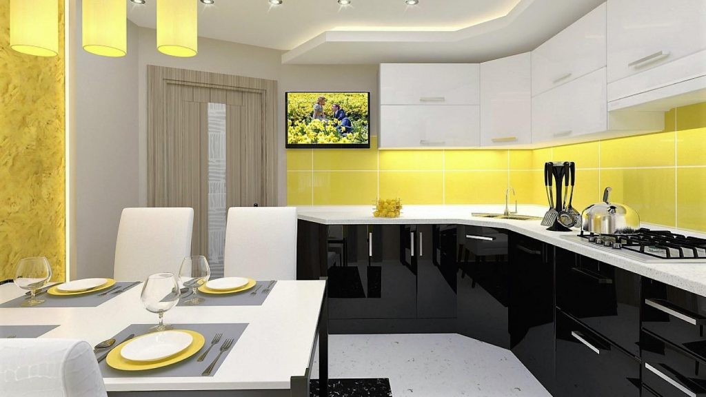 Здесь главное чувство меры. Желтым можно сделать основные детали кухни, например, стены или кухонный гарнитур.