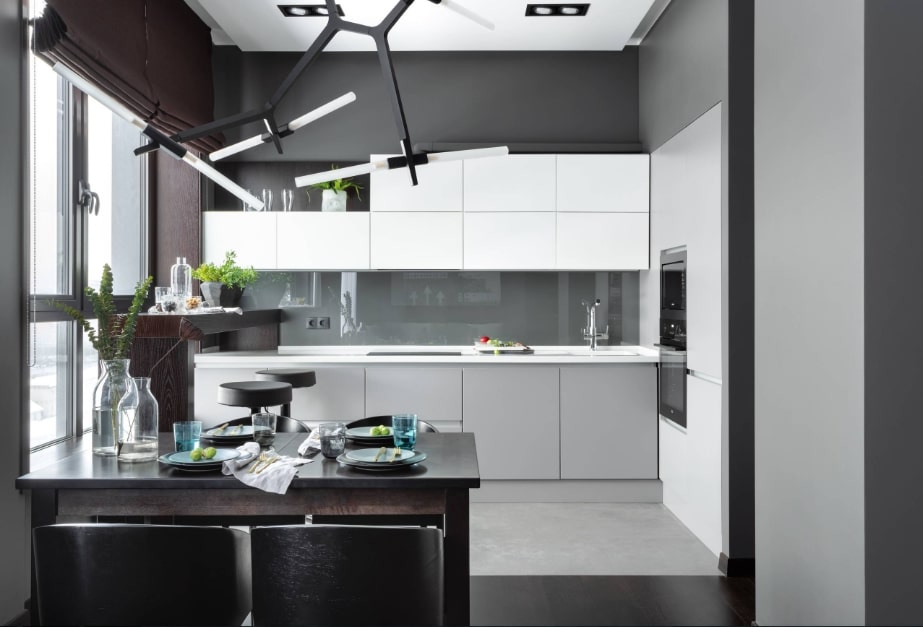 В этом случае маленькая кухня может представлять собой только рабочее помещение для приготовления еды, а столовую придется организовать в соседней комнате. В кухне же установить мини-стойку для быстрых перекусов или утреннего кофе.