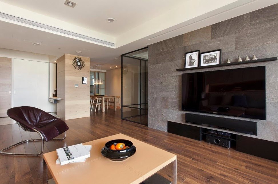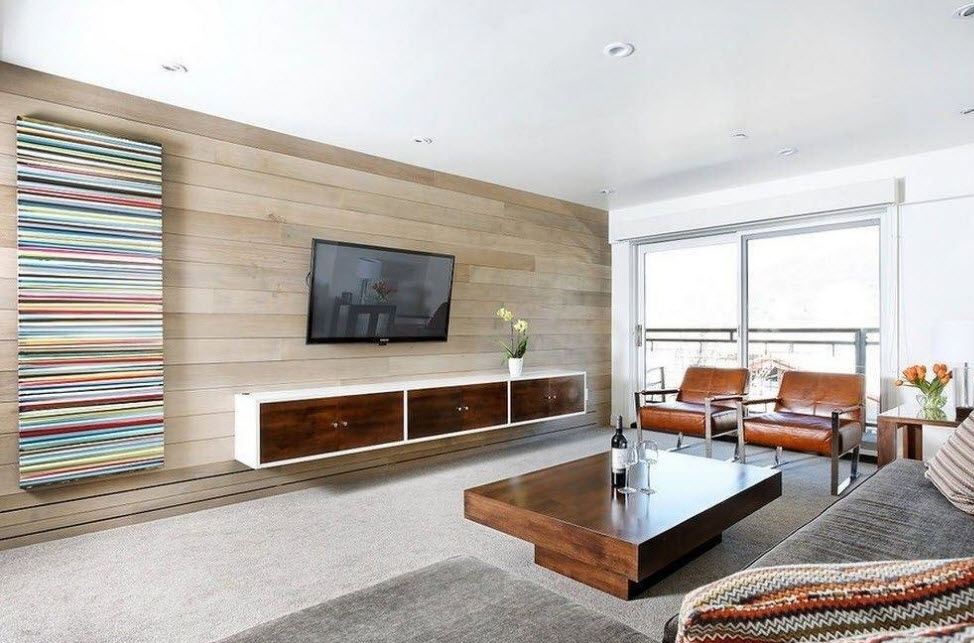 Если в комнате преобладает стиль хай-тек, то обратите внимание на варианты из глянцевых материалов. Для современной классики наиболее подходящим материалом является имитация светлого благородного дерева