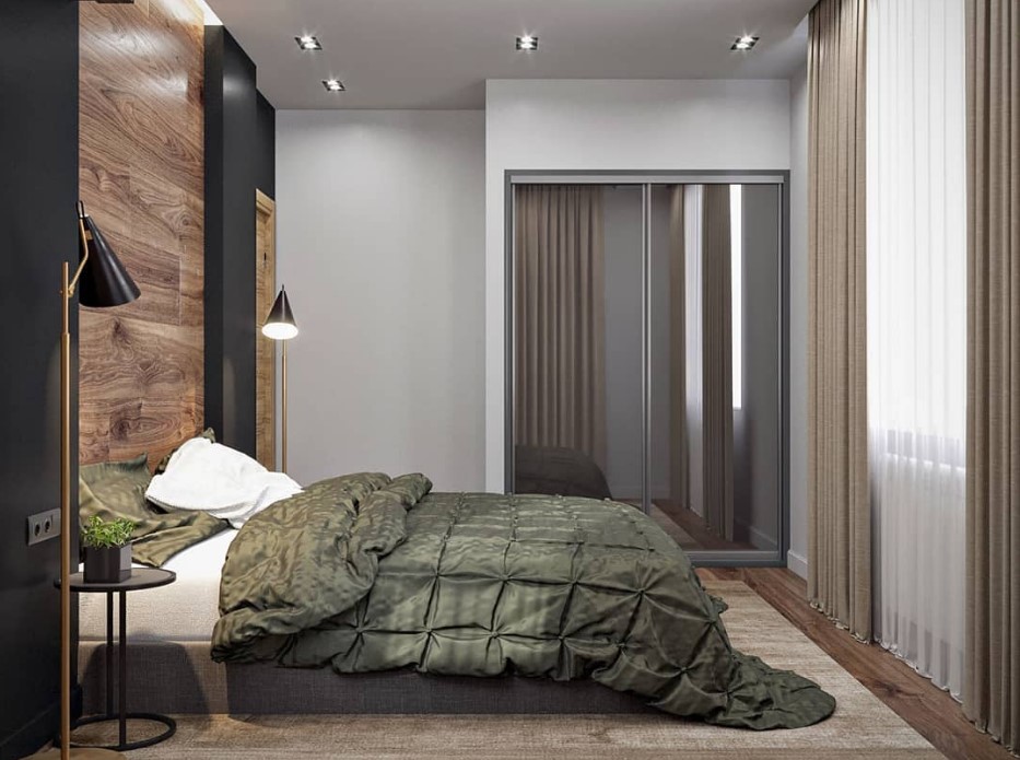 Деревянная отделка всегда ассоциируется с теплом, уютом и домашним очагом. Поэтому в спальне такие элегантные натуральные материалы как нельзя кстати.