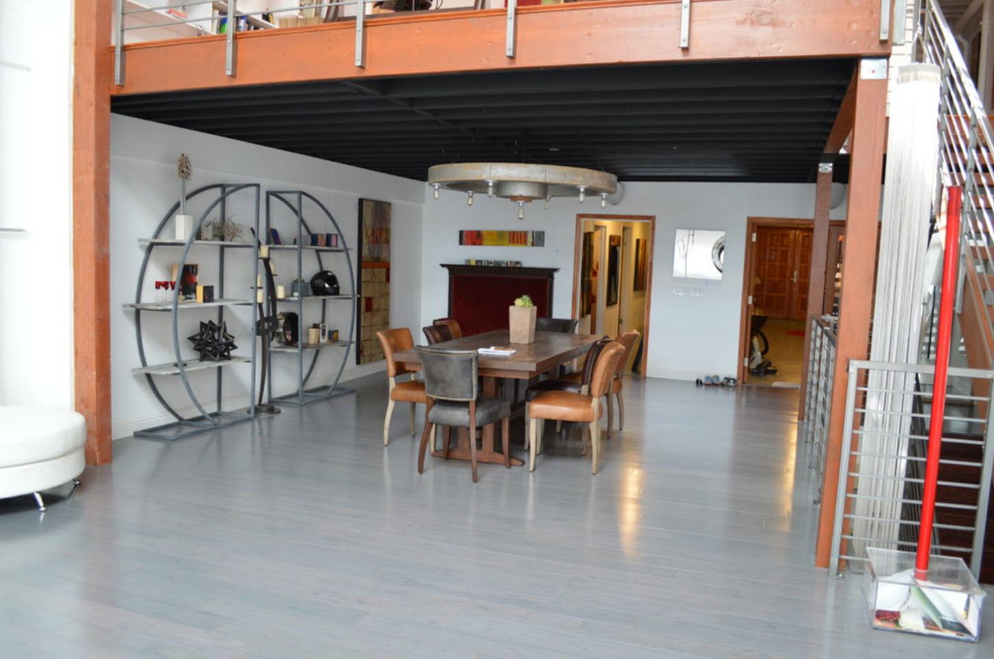 В кухне это может быть ламинат с имитацией натурального дерева теплого коричневого цвета, перекликающийся со столом, стульями и полом в похожем оттенке. Добавьте непринужденности подвесными лампочками над столом и оригинальным плакатом.
