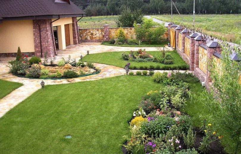 Если уже есть постройки, а владельцу хочется обновить территорию, оптимальный вариант – смешанный стиль. В таком случае, хорошо сочетаются регулярный и ландшафтный стили.