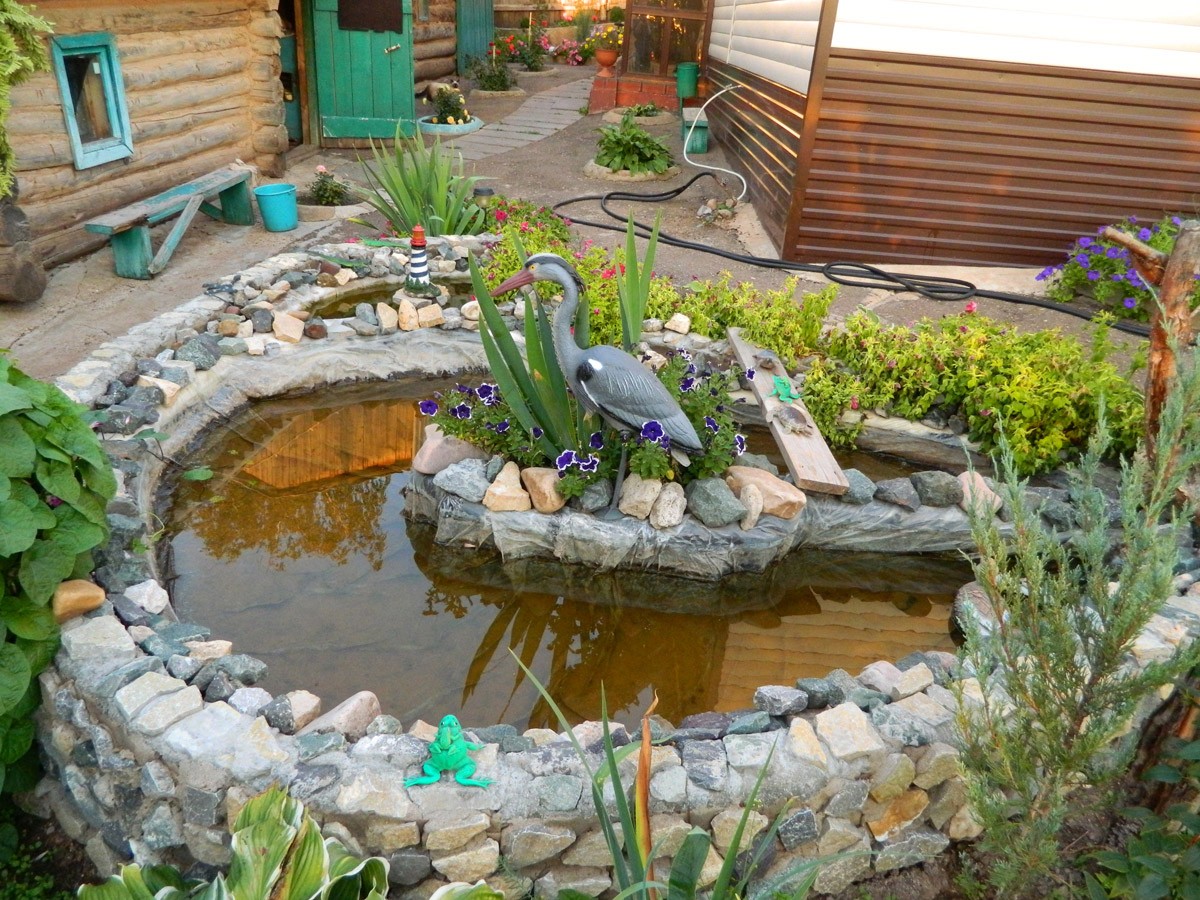 Проще всего сделать маленький водоем из ненужных емкостей. В землю вкапывают бочку или ванну, оставляя на поверхности 20 см высоты. Чтобы он выглядел натуральным, по краям выкладывают камни, гальку или гравий. Края искусственного водоема делают круглыми или овальными, допустима неправильная форма с плавными очертаниями. Такой миниатюрный пруд удачно сочетается с любым ландшафтным дизайном.