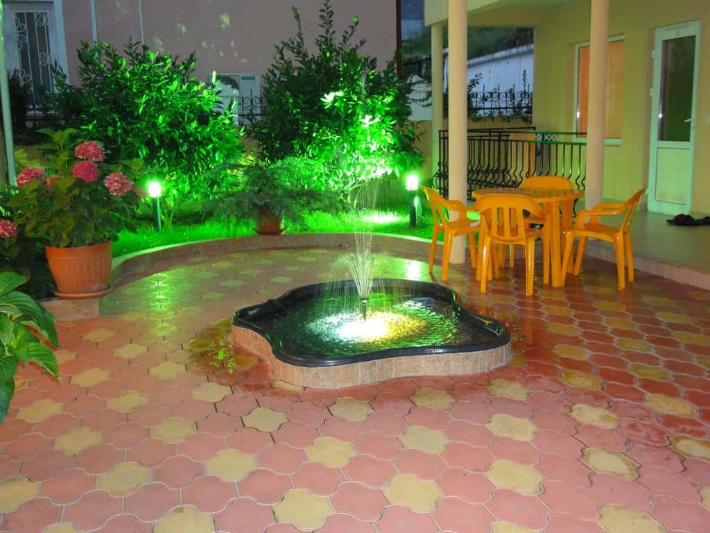 Использовать нужно энергосберегающие лампочки, хорошо защищенные от воды, пыли. Хорошо смотрятся декоративные фонари «под старину», светящиеся «камни», садовые скульптуры со встроенной подсветкой, деревья с иллюминацией.