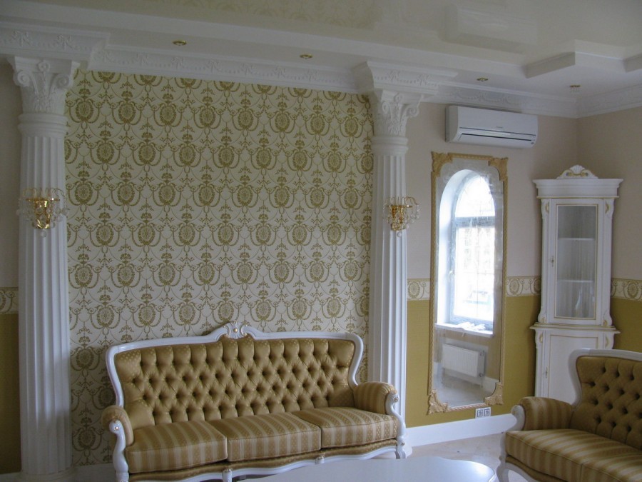 Колонны, произведённые из гипса, в подобных случаях необходимо армировать. Колонны из лепнины нередко скрывают различные стояки, расположенные вдоль стен в квартире на видном месте.