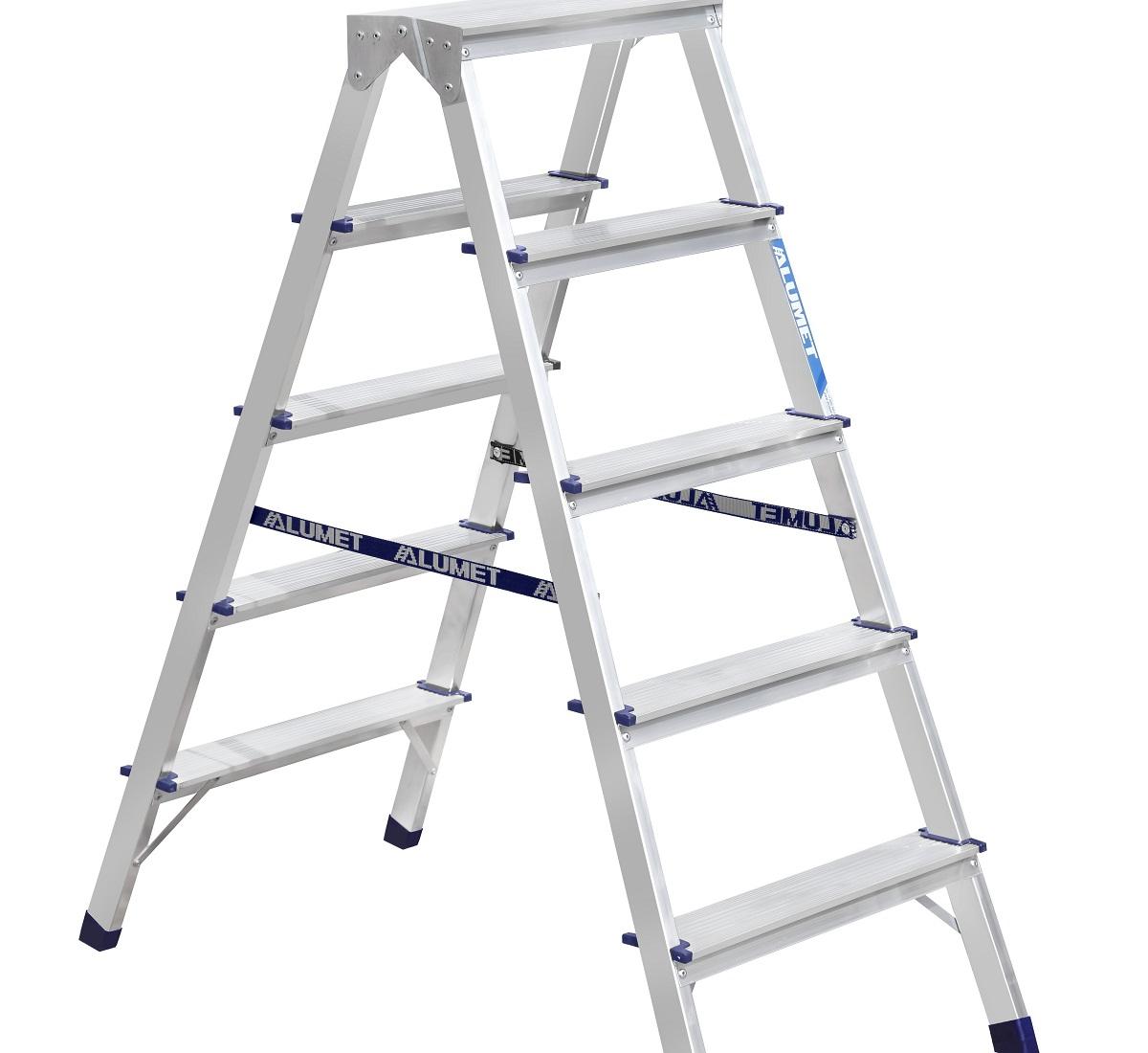 От лестниц и односторонних лестничных конструкций рассматриваемый тип моделей отличается наличием ступеней на обеих раздвижных устойчивых стойках. На такой стремянке допускается возможность выполнения трудоемкой работы двумя работниками, находящимися одновременно с разных сторон. Противоположную сторону мастер может использовать и для размещения инструментов.