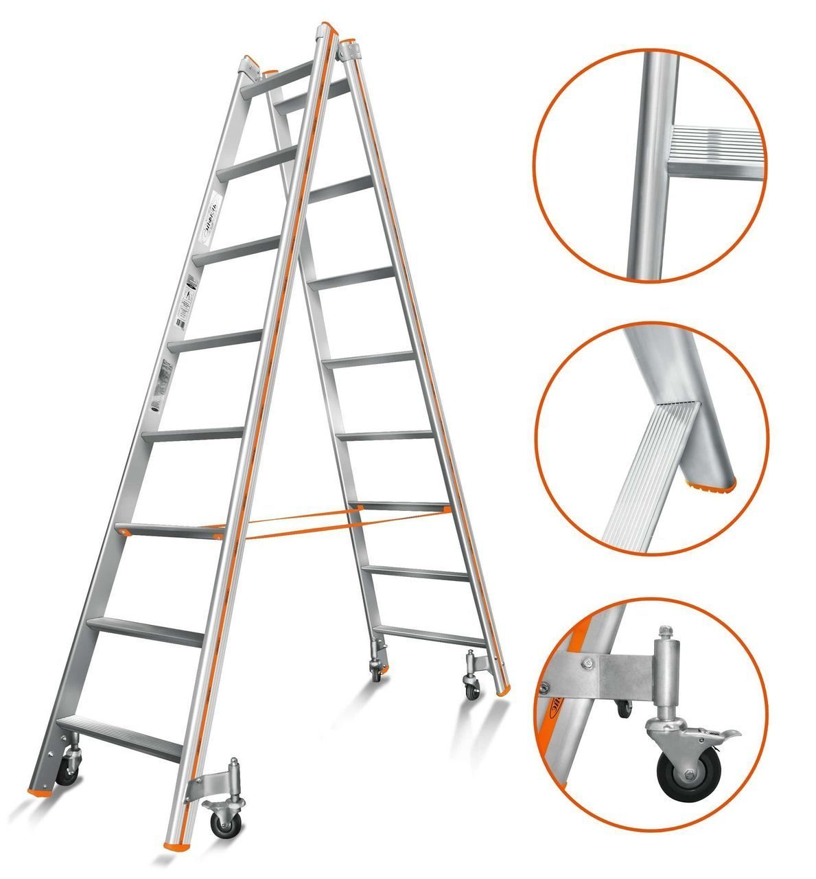 Все элементы устройства создаются из алюминия или дюралюминия. Ступени бывают узкими или широкими. Это обусловлено выбором модели. Различают прямые шарнирные изделия и выдвижные стремянки. При необходимости осуществления более сложного типа работ, подбирается профессиональное оборудование.