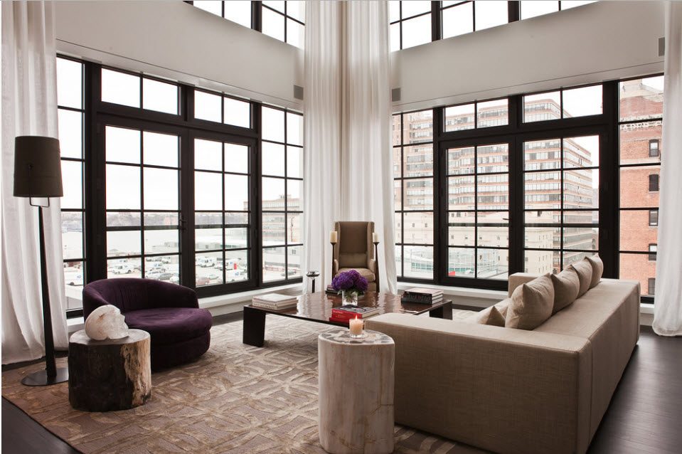 Портьеры на люверсах – прекрасный вариант для оформления окна в скандинавском интерьере. Они смотрятся очень аккуратно и в то же время дорого, демонстрируя отменный вкус хозяев.
