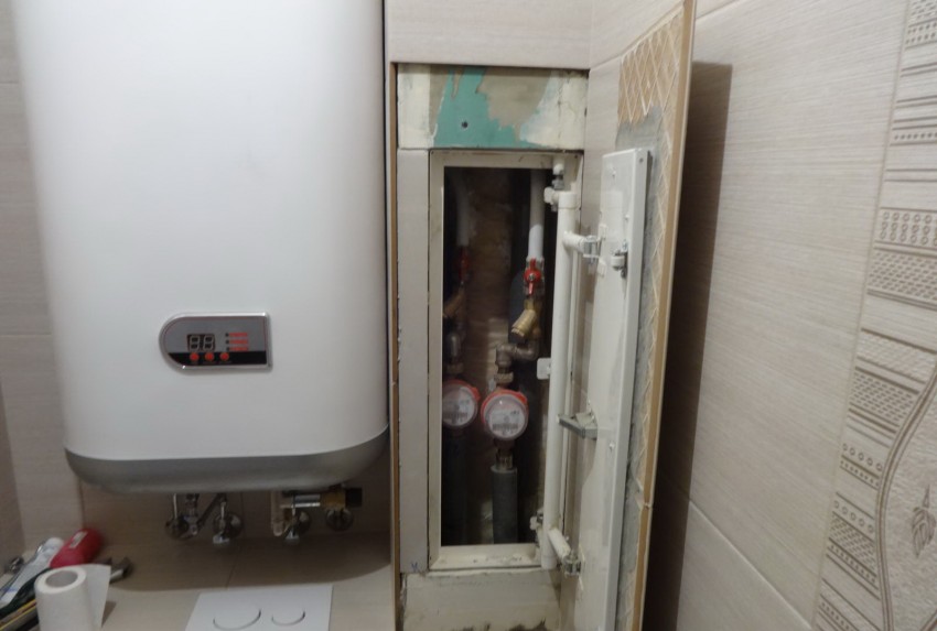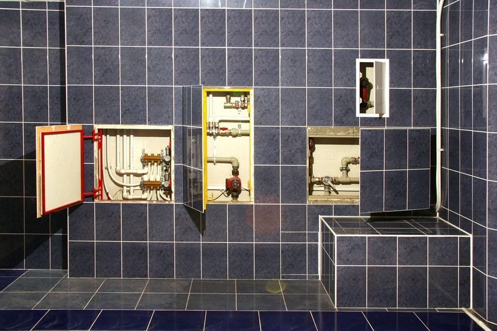 Иногда делают технические ниши больших размеров, например, если необходимо замаскировать за фальшстеной бойлер, распределитель, фильтр, счетчик, коллектор холодной и горячей воды или другое оборудование. Нередко большая ревизионная ниша требуется в туалете или совмещенном санузле для обслуживания канализации. Если найти люк подходящих размеров не удается, то можно прибегнуть к другим способам маскировки коммуникаций.