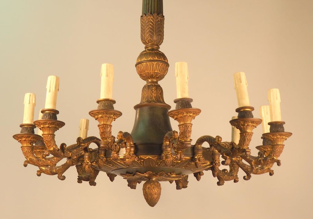 Каркас чаще всего из металла либо бронзы. Выбирать потолочную люстру такого типа лучше всего для гостиной и столовой.