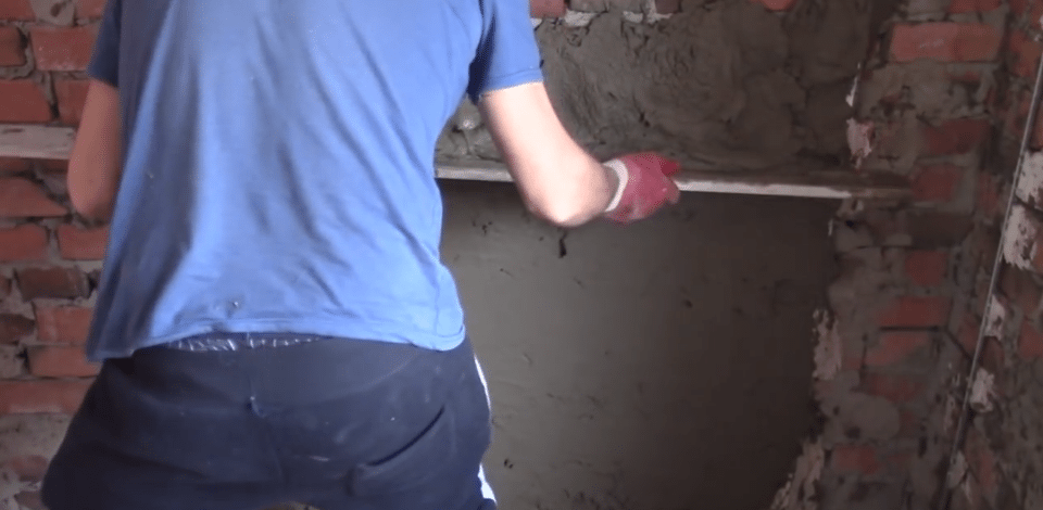 Попавшая на правило штукатурка возвращается не обратно, на поверхность стены, а в приготовленный раствор. Если после первого выравнивания остались впадины, то они заполняются раствором и процедура срезания излишек штукатурки повторяется сначала.