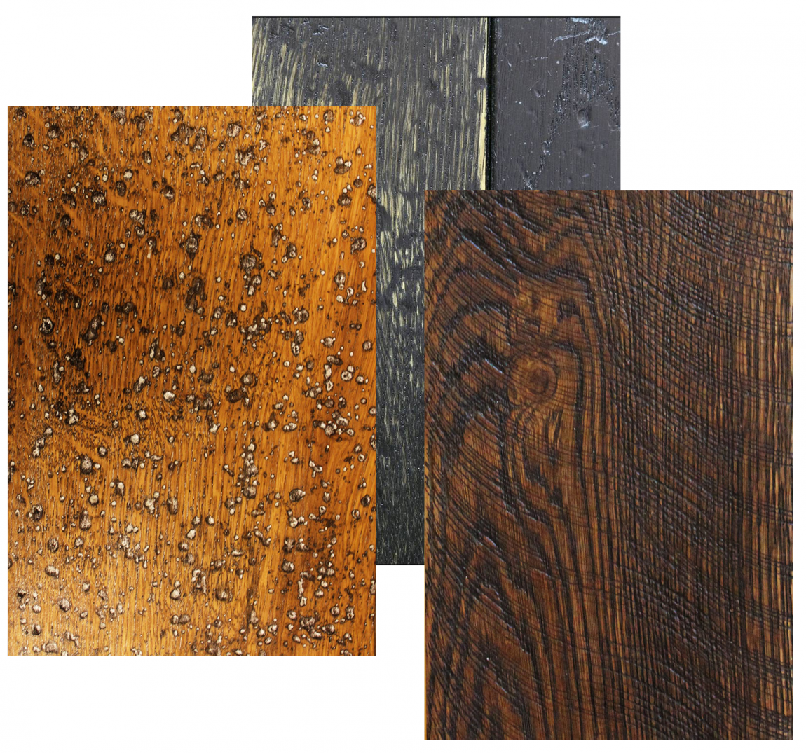 - Строганные и пиленные массивные доски делаются для получения эффекта износа.