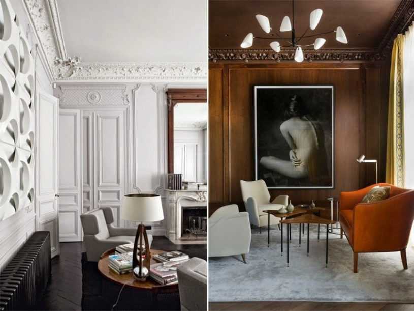 В интерьере с неоклассикой могут соседствовать скандинавский стиль, лофт или модерн