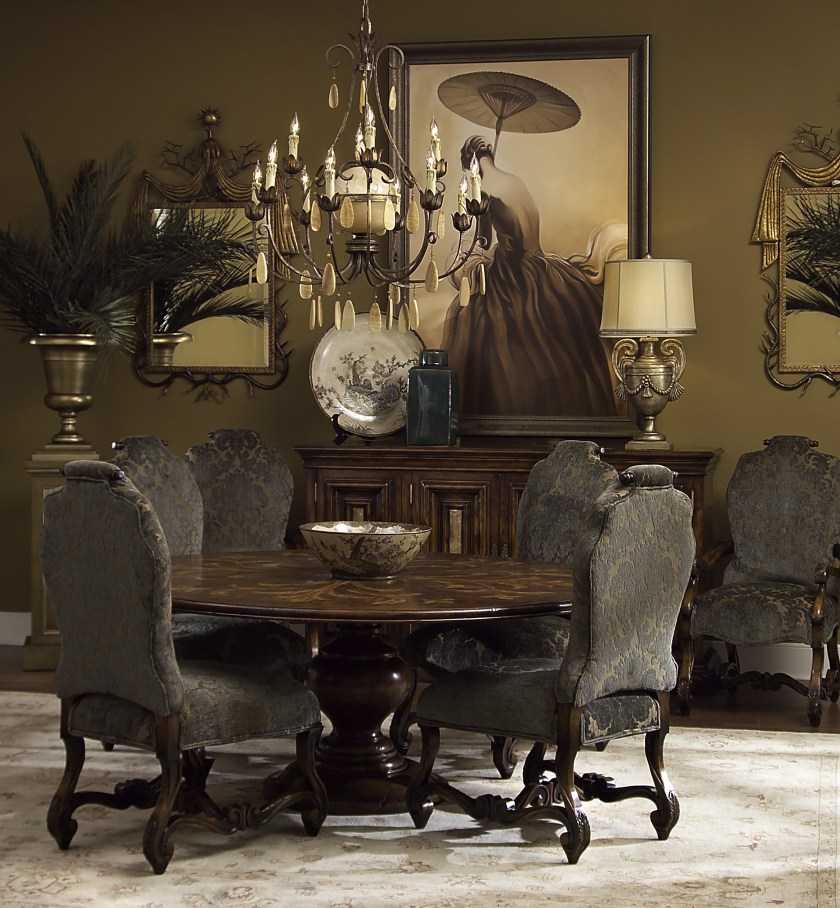 - Обязателен предмет, являющийся центральным акцентом, – в спальне это кровать с балдахином, в кабинете и столовой – стол, в гостиной – камин.