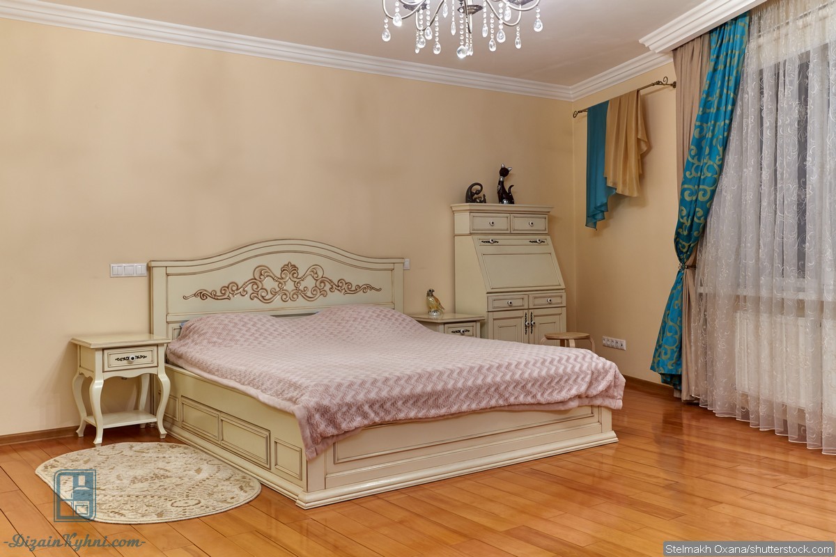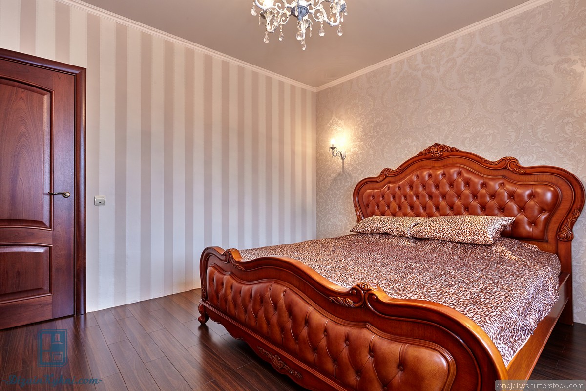 Начать, конечно же, стоит с центрального и основного элемента — кровати. Для классического интерьера не подойдет раскладной диван-трансформер. И саму кровать нужно выбирать с особой тщательность. Приветствуются резные ножки и основания, а также интересные изголовья. Простота и изысканность — вот отличие мебели в классическом стиле. Также стоит учитывать цвет самой мебели, породу дерева и ткань. Сочетание тканевой обивки с натуральным деревом — еще один признак классического интерьера.